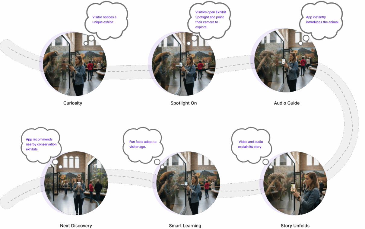 With Exhibit Spotlight by Pigeon Tech, visitors simply opens the Exhibit Spotlight in the app and points the camera towards exhibit, animal or any static exhibit to instantly unlock rich, interactive information— transforming passive viewing into meaningful discovery.